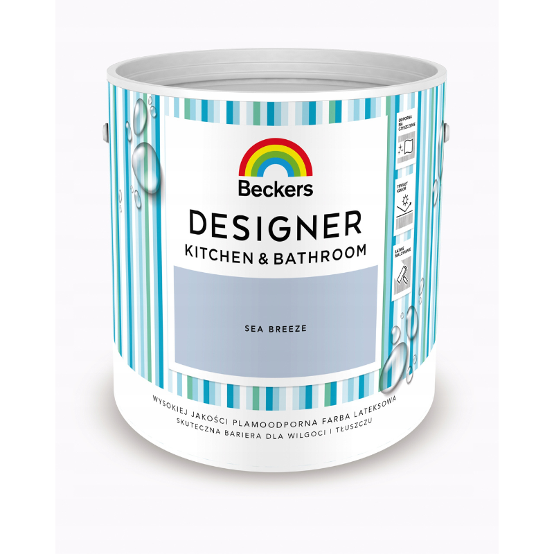 BECKERS DESIGNER KITCHEN & BATHROOM to oryginalna seria wysokiej jakości wodorozcieńczalnych farb lateksowych, szczególnie rekomendowana do stosowania w pomieszczeniach narażonych na rozwój grzybów pleśniowych, działanie wilgoci oraz pary wodnej występującej zarówno w kuchniach, jak i łazienkach.