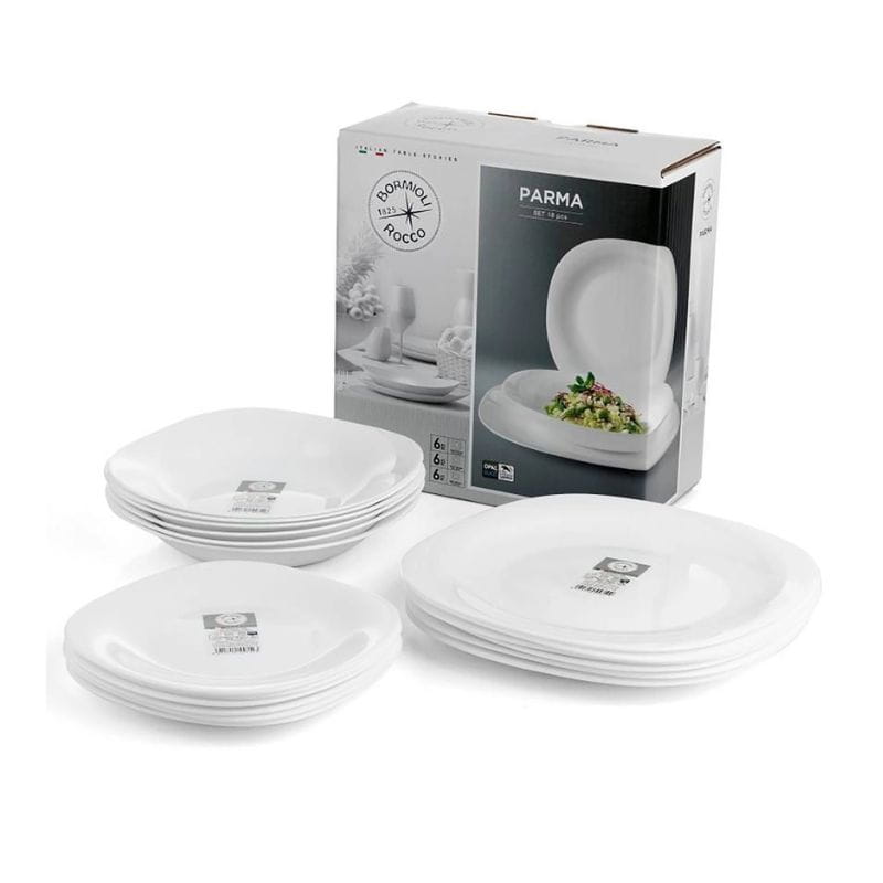 Zestaw talerzy Bormioli Rocco Parma dla 6 osób to minimalistyczny i elegancki serwis obiadowy, stworzony z myślą o codziennych posiłkach oraz okazjonalnych obiadach i kolacjach. Każdy z 18 elementów tego zestawu wykonany jest z trwałego i odpornego na zmiany temperatur materiału o nazwie Opal Glass, co gwarantuje wyjątkową trwałość.