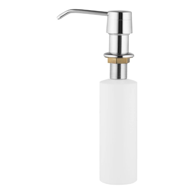 Model wyposażony został w pompkę w eleganckim, chromowanym wykończeniu, która nadaje całości estetyczny wygląd i dobrze komponuje się z innymi elementami armatury kuchennej. Błyszcząca powierzchnia sprawia, że dozownik pasuje zarówno do nowoczesnych, jak i klasycznych aranżacji kuchni.