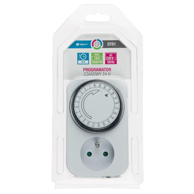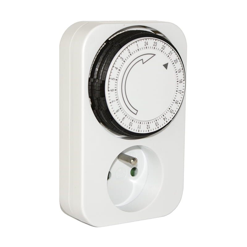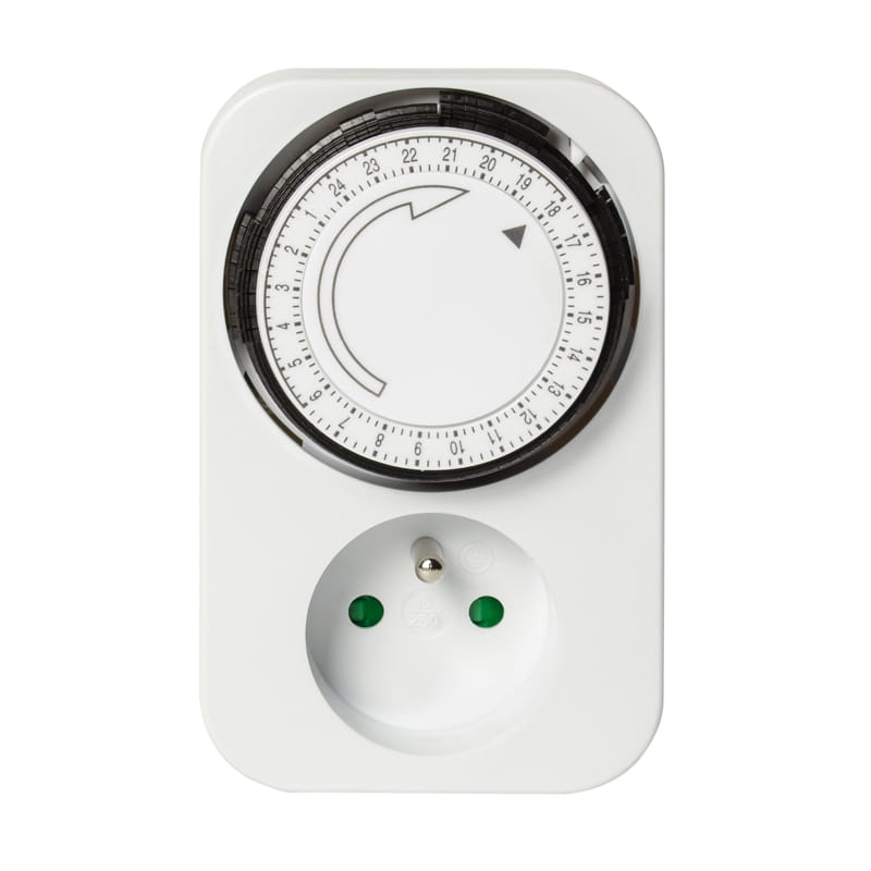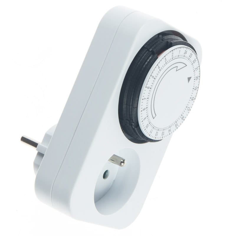 Analogowy programator czasowy służy do automatycznego włączania i wyłączania urządzeń elektrycznych podłączonych do gniazda w trybie 24-godzinnym. Pozwala na zaprogramowanie godzin załączenia i wyłączenia sprzętów elektronicznych. Programator pracuje w cyklu dobowym, minimalny czas nastawienia pomiędzy włączeniem a wyłączeniem wynosi 15 minut. Dzięki temu urządzeniu możesz włączyć np. światło w akwarium lub pralkę podczas Twojej nieobecności w domu. Biały kolor urządzenia sprawia, że bardzo dobrze komponuje się z białymi ścianami.