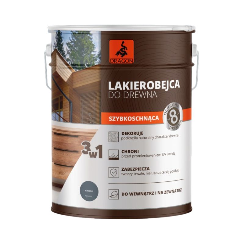 DRAGON Lakierobejca do drewna szybkoschnąca 5L Antracyt