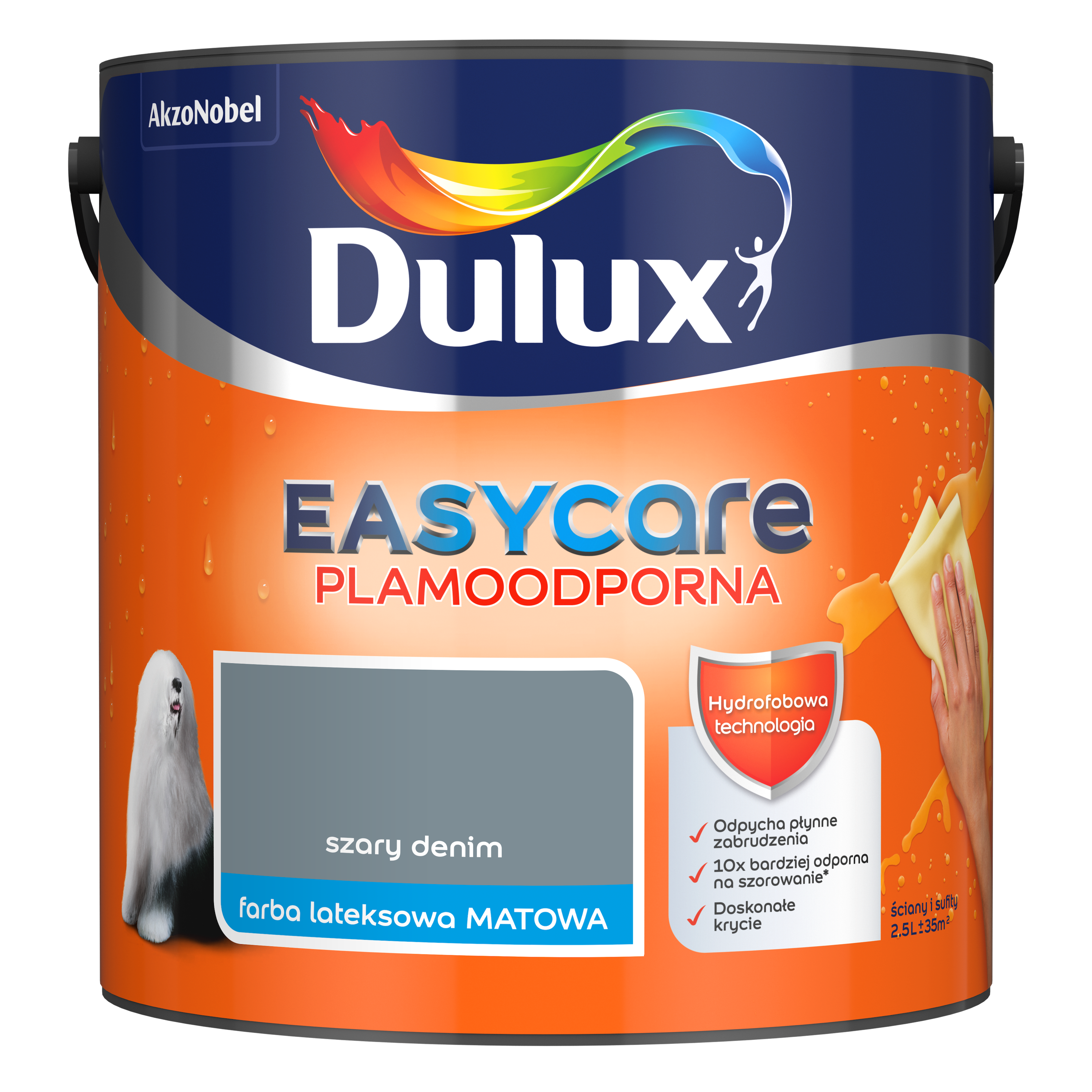 DULUX EASYCARE to jedna z nielicznych farb plamoodpornych o matowym wykończeniu, zgodnie z obowiązującymi trendami. Powierzchnie zyskują perfekcyjnie matową powłokę, a niedoskonałości podłoża są niwelowane.