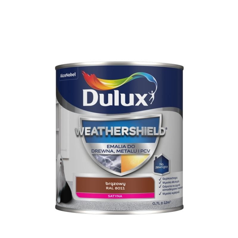 DULUX Emalia Weathershield do drewna, metalu i PCV 0,7L brązowy