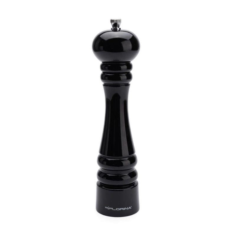 Elegancki młynek klasyczny Florina w kolorze czarnym o wysokości 24 cm to doskonały dodatek do każdej kuchni, idealnie komponujący się z różnymi stylami aranżacji. Wykonany z drewna bukowego, zabezpieczonego lakierem, skutecznie chroni przechowywane przyprawy przed drobnoustrojami, co gwarantuje ich świeżość na dłużej. Mechanizm mielący ze stali nierdzewnej zapewnia precyzyjne mielenie przypraw na drobny proszek, a jego trwałość pozwala cieszyć się niezawodnym działaniem przez wiele lat. Doskonale nadaje się nie tylko do mielenia pieprzu, ale także innych przypraw, takich jak koper włoski, kardamon czy suszona papryka.