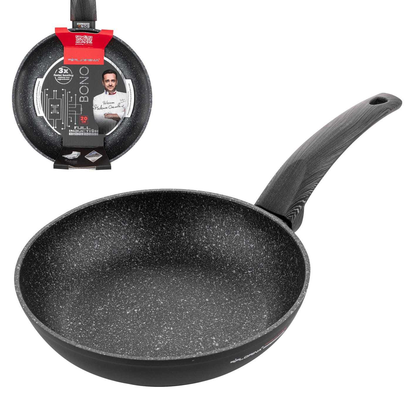 Seria garnków i patelni Bono nagrzewa się 3 razy szybciej, skracając czas gotowania i zachowując cenne minerały w potrawie. Grzeje w każdy palnik, więc możesz go używać na dowolnej kuchence, nawet indukcji. Linia garnków i patelni Bono polecana jest przez Mateusza Gesslera!