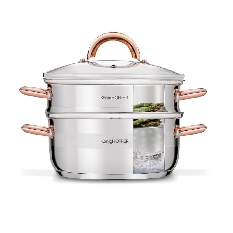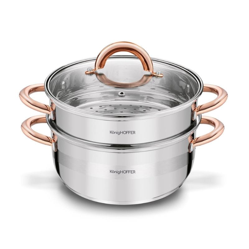Zadbaj o zdrowie i wygodę gotowania dzięki garnkowi KonigHOFFER Faro Copper 2,9L. Zamów już dziś i odkryj smak potraw gotowanych na parze!