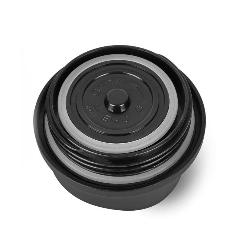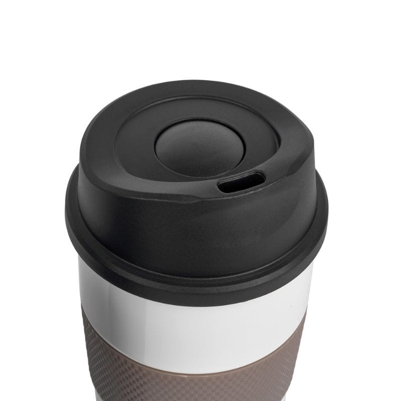 Wyposażony w pokrywkę z ustnikiem i zamknięciem typu klik, kubek zapewnia pełną szczelność, chroniąc przed przypadkowym rozlaniem. Silikonowy pasek wokół korpusu zapewnia wygodny i stabilny chwyt, a stal nierdzewna malowana proszkowo gwarantuje trwałość i odporność na uszkodzenia.