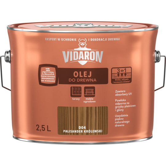 Parametru Techniczne VIDARON Olej do Drewna Palisander Królewski D04 2,5L