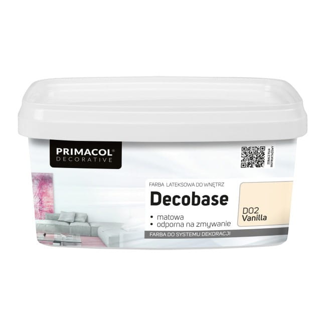 PRIMACOL FARBA DECOBASE to wysokiej jakości seria lateksowych produktów emulsyjnych do ścian i sufitów wewnątrz obiektów. Serię wyróżnia doskonała trwałość, odporność oraz krycie powierzchni.