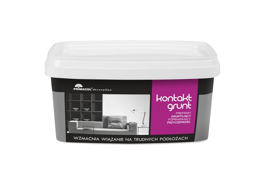 Kontakt Grunt jest stosowany w celu zwiększenia przyczepności i siły wiązania systemów dekoracji. Preparat łączy się z trudnymi powierzchniami i tworzy powłokę zapewniającą dobrą przyczepność elementom systemu Primacol Decorative takim jak: pasty strukturalne, trawertyn, farba betonowa. Dzięki temu można stosować te produkty nawet na tak trudnych powierzchniach jak niektóre rodzaje szkła, czy inne nienasiąkliwe materiały. Kontakt grunt powinien być również zastosowany wszędzie tam, gdzie istnieje podejrzenie słabego wiązania.