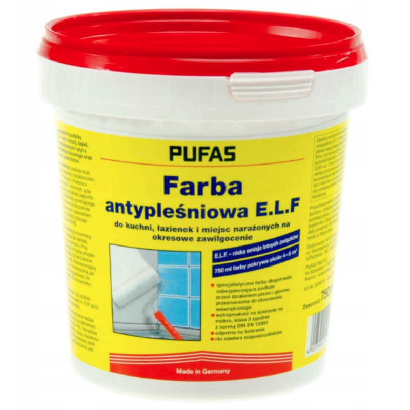 - Specjalistyczna farba antypleśniowa E.L.F. do zastosowań wewnętrznych.