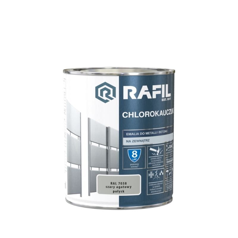 Emalia Rafil Chlorokauczuk to profesjonalne rozwiązanie dla wymagających użytkowników, gwarantujące trwałość powłoki aż do 8 lat. Wybierz skuteczną ochronę i intensywny kolor dla swoich powierzchni!