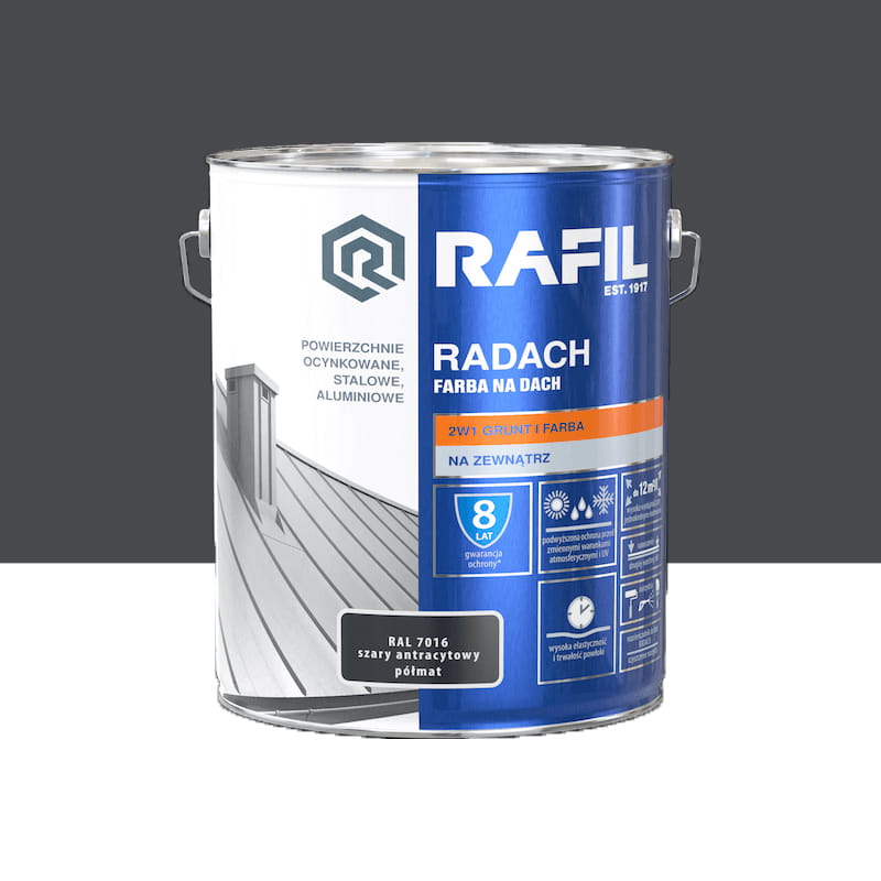 Rafil RADACH farba na dach 2w1 szary antracytowy półmat RAL7016 10L