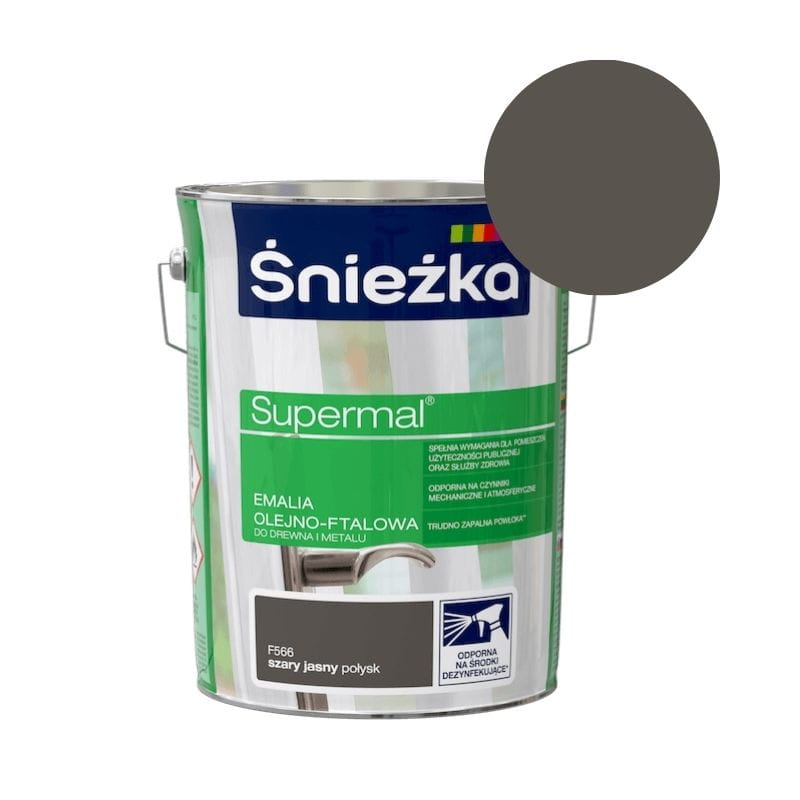 ŚNIEŻKA SUPERMAL Emalia olejno-ftalowa F566 szary jasny połysk 5L