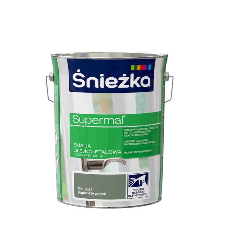 ŚNIEŻKA SUPERMAL Emalia olejno-ftalowa RAL7023 popielaty połysk 5L