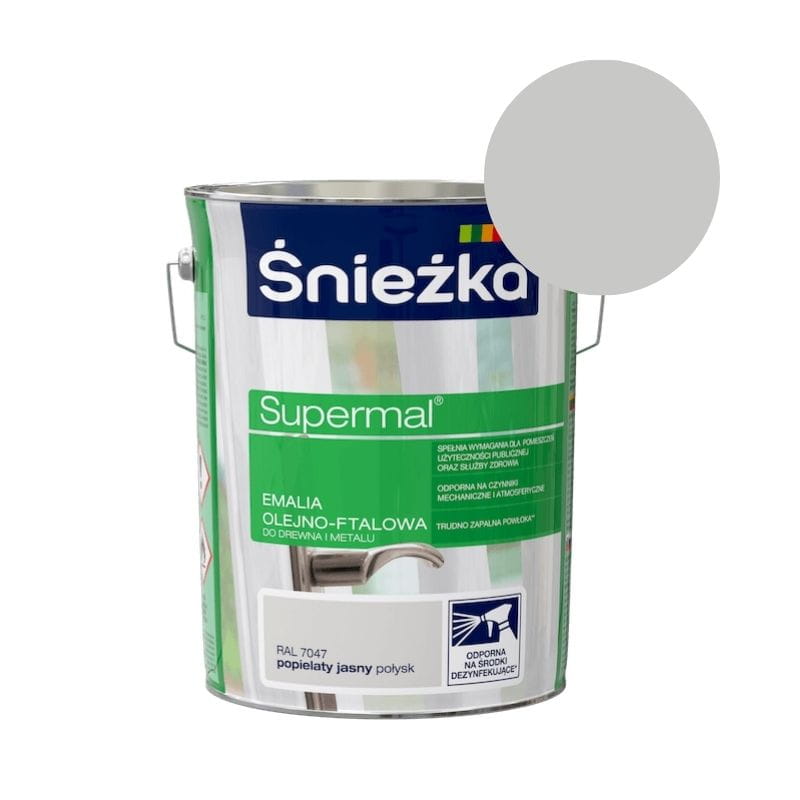 ŚNIEŻKA SUPERMAL Emalia olejno-ftalowa RAL7047 popielaty jasny połysk 5L