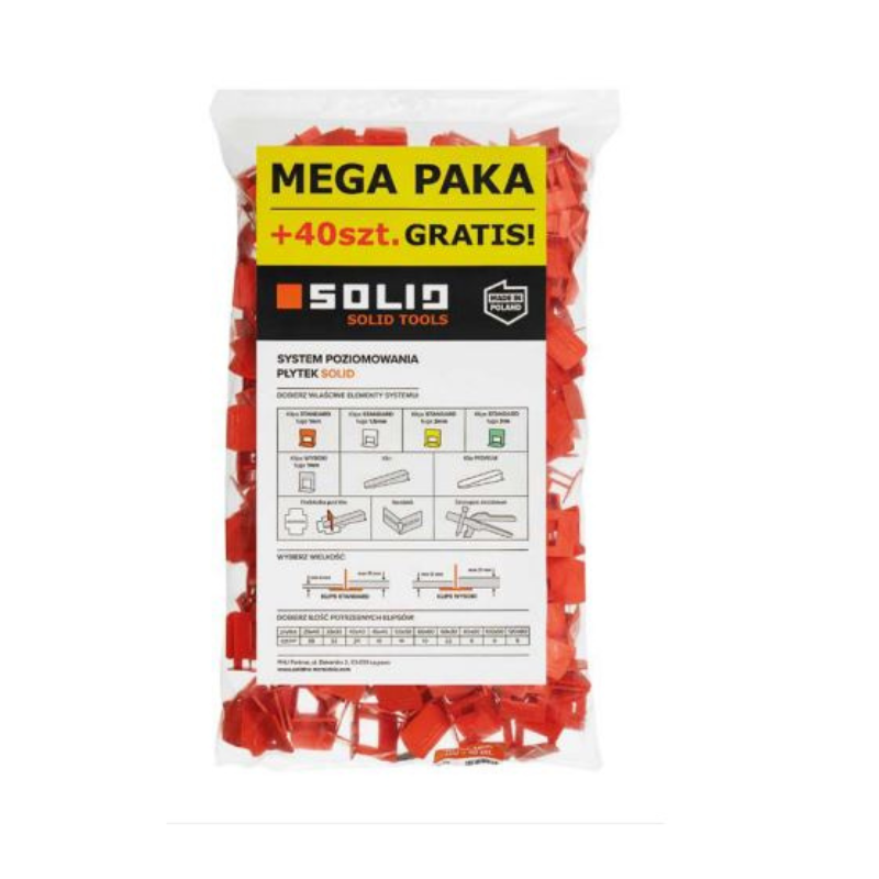 Solid system klipsy 1mm to niezastąpione narzędzie podczas układania płytek. Innowacyjny system poziomowania zwiększa wydajność pracy i precyzję, pozwalając wykonawcy osiągnąć doskonały efekt końcowy.