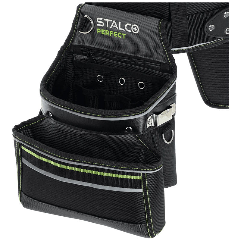 - Pas narzędziowy z linii STALCO Perfect wyposażono w kilka etui dedykowanych konkretnym typom narzędzi.