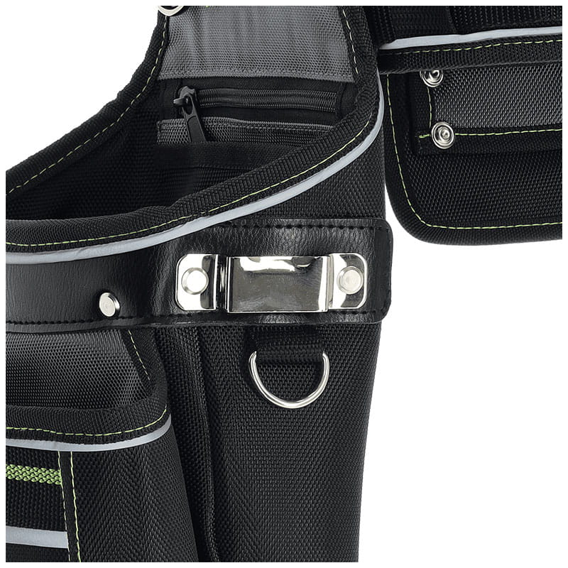 - Znalazła się w nim kieszeń na młotek, kabura na wkrętarkę lub narzędzia ręczne, a także dodatkowa duża zapinana kieszeń.