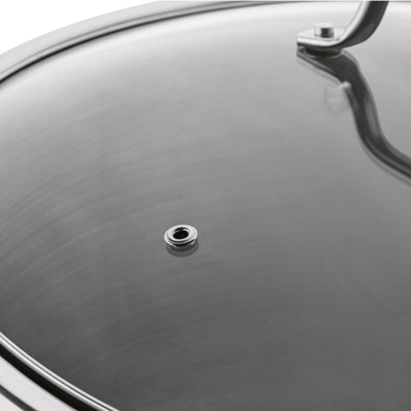 - Szklana pokrywa z odpowietrznikiem – przyspiesza gotowanie i utrzymuje temperaturę