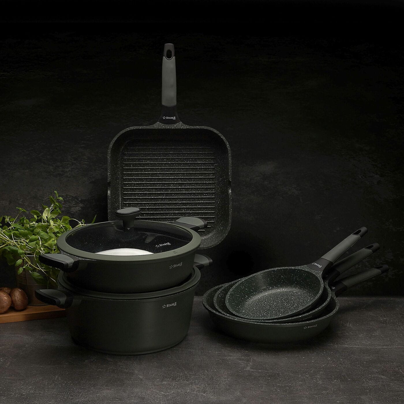 Marka Starke Pro czerpie ze światowej jakości i trwałości. Jej produkty wplatają do domowej kuchni praktyczne innowacje. Wszystko dzięki nim można stworzyć łatwiej, oszczędzając energię oraz w najlepszym stylu. Wyrazisty design, nowoczesna technologia produkcji i najlepsze właściwości stanowią rdzeń jej korzyści. Korzysta m.in. z powłok nieprzywierających GREBLON, AEROLITE i Multistone. Wzmacnia swoje kolekcje warstwą ceramiczną, drobinami granitu, a nawet tytanem. Gwarantuje bezpieczeństwo użytkowania (np. dzięki nienagrzewającym się uchwytom oraz oznaczeniu PFOA Free). Rekomendowana jest też przez Piotra Kucharskiego, który został jej ambasadorem. Z nią gotuje się sprawniej!
