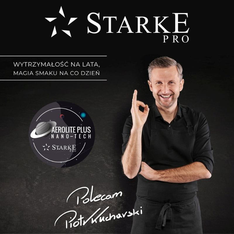 Produkt należy do kolekcji naczyń Starke Pro Ceres Marble z powłoką marmurową. Do domowej kuchni poleca go Piotr Kucharski. W rękach tego zawodowego kucharza zdał każdy test jakości i funkcjonalności. W ten sposób garnek na indukcję z tej serii może zapewnić ci profesjonalne wykonanie i właściwości, które na co dzień wykorzystują prawdziwi szefowie kuchni.