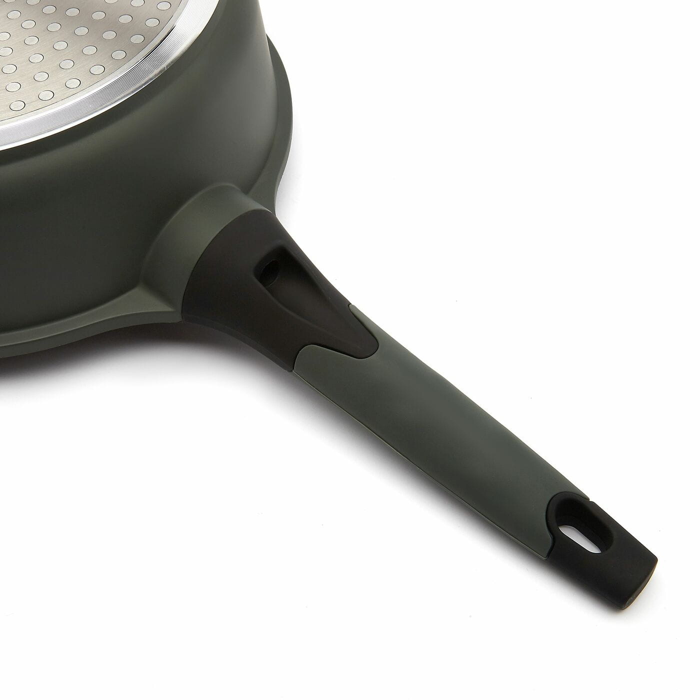 Patelnia Viridi wykonana została z aluminium odlewanego techniką die cast, dzięki czemu jest cięższa niż inne patelnie aluminiowe oraz doskonale przewodzi ciepło. Z zewnątrz patelnia pokryta jest silikonową farbą żaroodporną. Nadaje się do smażenia w wysokich temperaturach. Trójwarstwowa powłoka z drobinami granitu GREBLON C3 wytrzyma aż 8000 cykli ścierania. Patelnia w zestawie z pokrywką. Model ten wyposażony jest w dwa uchwyty: krótki oraz długą rączkę.