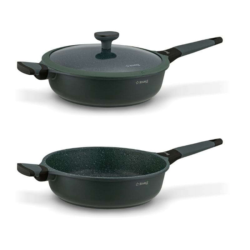 STARKE PRO Patelnia marmurowa z pokrywką Viridi 28 cm głęboka