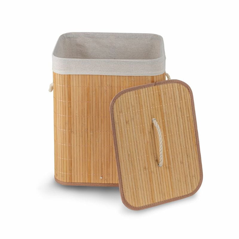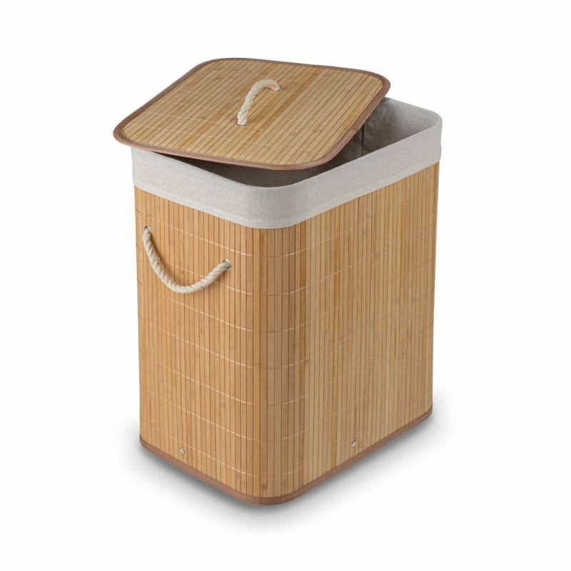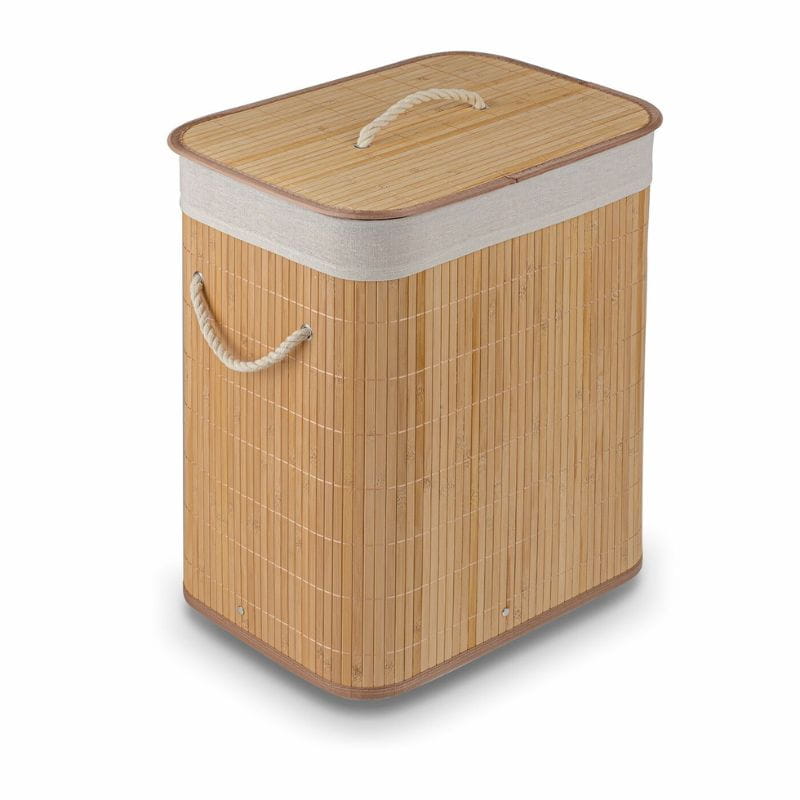 Kosz na pranie Tadar o pojemności 60 litrów to funkcjonalne i estetyczne rozwiązanie do przechowywania brudnej bielizny. Jego ekologiczna konstrukcja łączy listewki bambusowe z materiałami tekstylnymi, tworząc lekki i poręczny model o prostym i naturalnym designie.