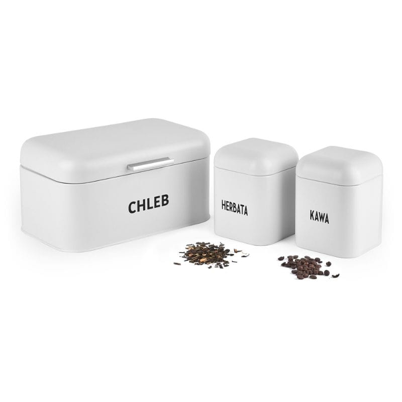 TADAR Chlebak stalowy i 2 pojemniki Salvador biały mat