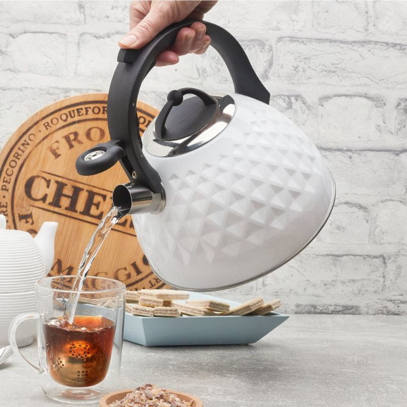 - czajnik stalowy malowany proszkowo w kolorze białym, wykończenie: połysk