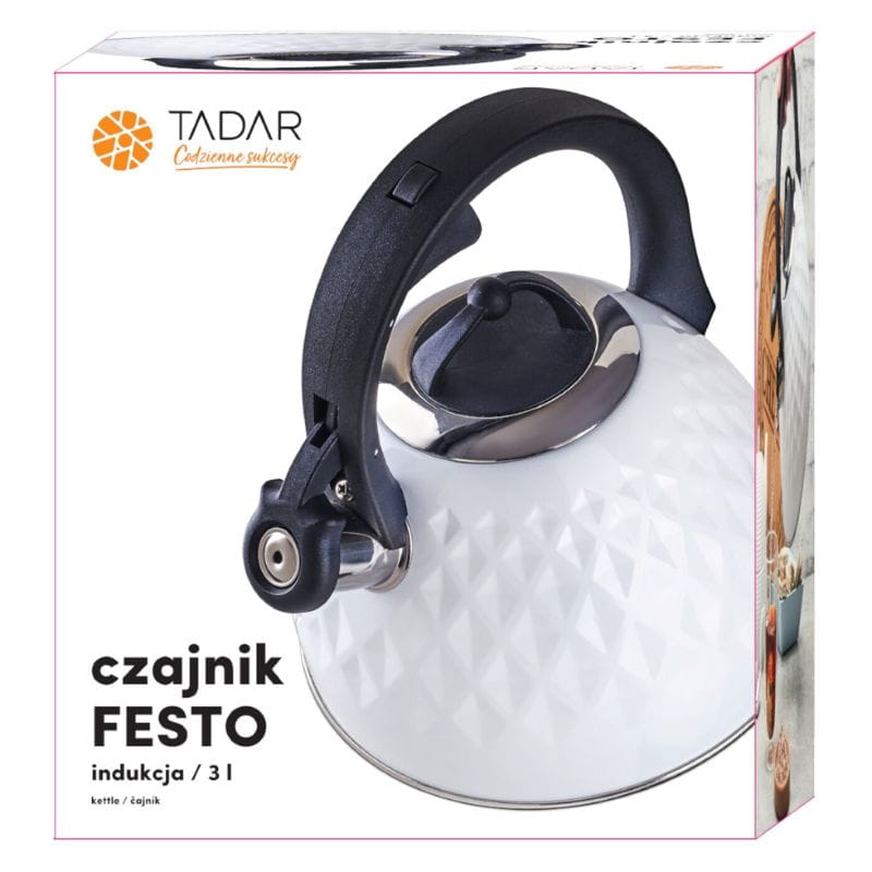 Czajnik Festo 3L marki TADAR to doskonały przykład połączenia funkcjonalności i bezpieczeństwa. Wykonany z wysokiej jakości stali nierdzewnej, czajnik posiada bakelitową rączkę, która nie nagrzewa się szybko, zapewniając komfortowe i bezpieczne nalewanie. Mechanizm bezpiecznego otwierania gwizdka minimalizuje ryzyko oparzeń, co jest szczególnie istotne podczas gotowania.