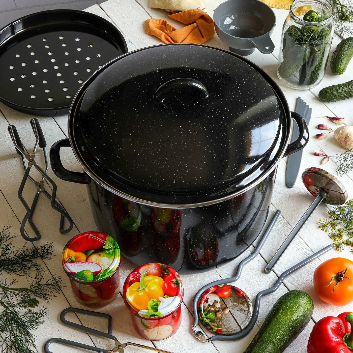 - wkładane dno z otworami zapobiega pękaniu słoików