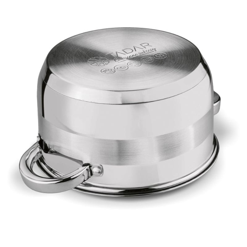 Garnek Tadar Roger to niezawodny wybór, który łączy funkcjonalność i trwałość z nowoczesnym designem. Wykonany z wysokiej jakości stali nierdzewnej, gwarantuje odporność na uszkodzenia, zmienne temperatury i działanie kwasów zawartych w żywności. Dzięki temu jest całkowicie bezpieczny dla zdrowia, a przygotowywane w nim potrawy zachowują naturalny smak i aromat.