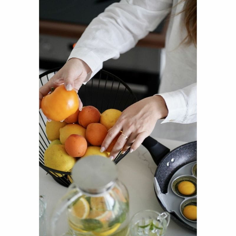 Kosz na owoce Skandi marki Tadar ma praktyczną, antypoślizgową podstawę, która gwarantuje stabilność, bez względu na to, czy postawisz go na kuchennym blacie czy na stole w jadalni. Jego duża pojemność pozwala na higieniczne przechowywanie ulubionych owoców dla całej rodziny. Asymetryczny, okrągły kształt doskonale komponuje się z nowoczesnym wystrojem, tworząc unikatową aranżację. Trwała metalowa konstrukcja kosza nie tylko zachwyca swoim wyglądem, ale także gwarantuje długotrwałe użytkowanie. Prosty kształt umożliwia łatwe utrzymanie go w czystości, a matowe wykończenie chroni przed zarysowaniami i sprawia, że pozostaje elegancki i nowoczesny przez długi czas. Dzięki doskonałej wentylacji owoców, przechowywanych w tym koszu, dłużej zachowasz ich świeżość i zdrowe walory. Dzień po dniu, możesz cieszyć się smakiem zdrowych przekąsek, a Twój stół zawsze będzie wyglądać apetycznie i stylowo.