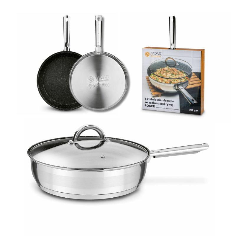 TADAR Patelnia ze stali nierdzewnej Roger 28 cm z pokrywką