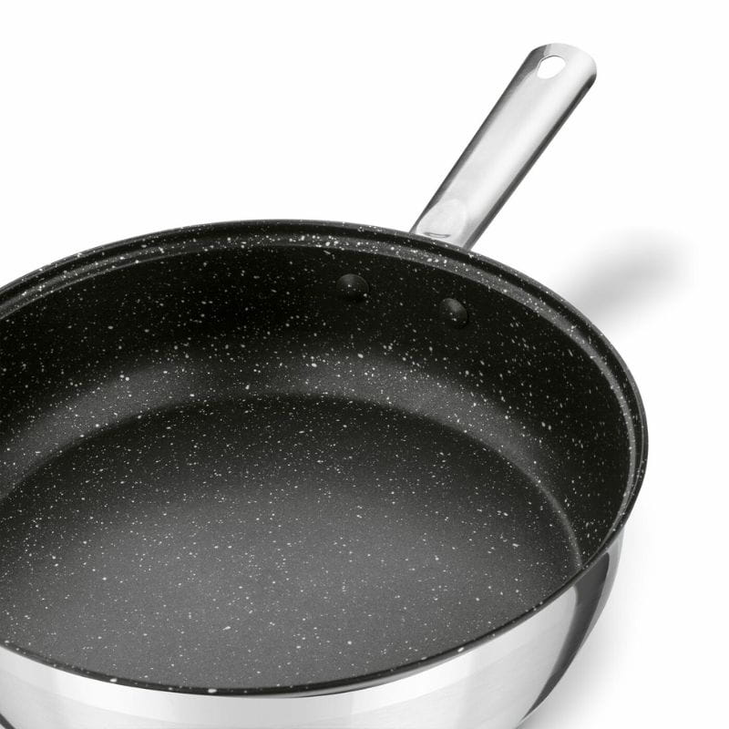 Patelnia TADAR Roger o średnicy 28 cm to niezastąpiony element każdej kuchni. Wykonana ze stali nierdzewnej, gwarantuje trwałość i równomierne rozprowadzanie ciepła, co przekłada się na szybkie i efektywne smażenie. Dzięki powłoce non-stick, składniki nie przywierają, co ułatwia gotowanie i czyszczenie, a także pozwala na przygotowanie potraw na małej ilości tłuszczu.