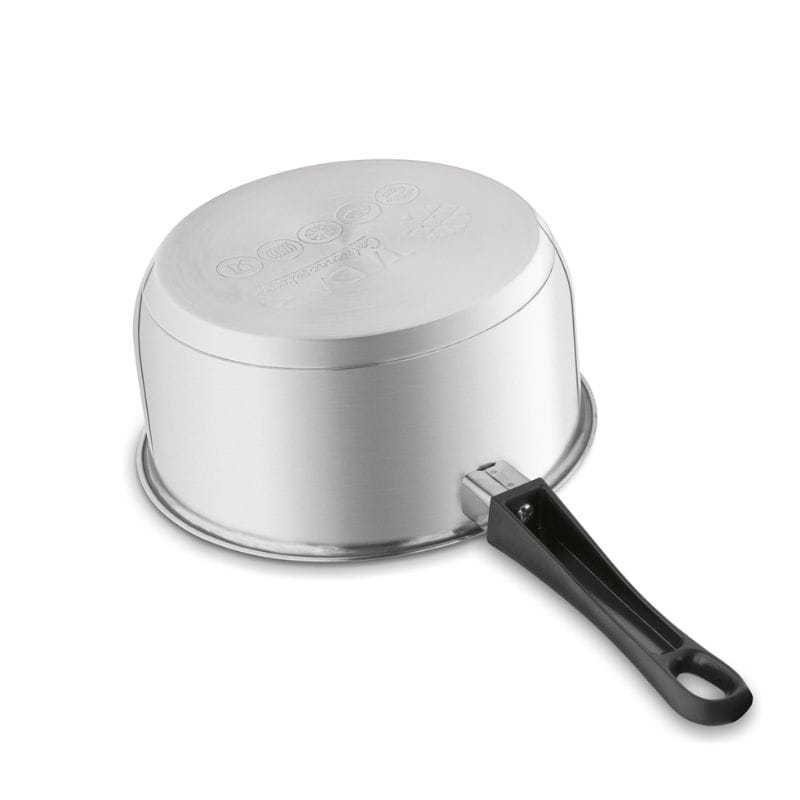 Rondel wyposażono w profilowaną rączkę z tworzywa wolno nagrzewającego się, która zapewnia wygodę i bezpieczeństwo użytkowania. Dodatkowo na brzegu znajduje się wylewka, umożliwiająca precyzyjne przelewanie zawartości bez rozlewania, co jest szczególnie przydatne podczas przygotowywania potraw, takich jak budyń czy sosy.