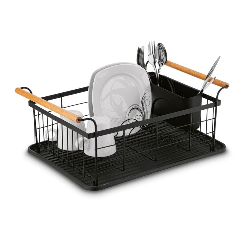 TADAR Suszarka do naczyń z ociekaczem i tacą 44 x 32 x 18,5 cm czarna