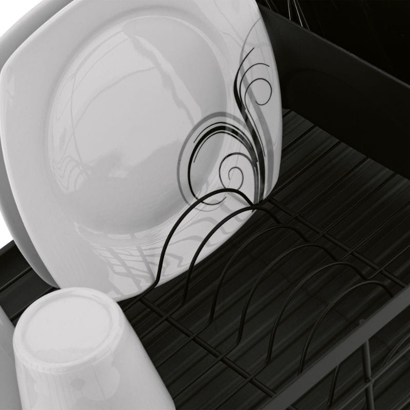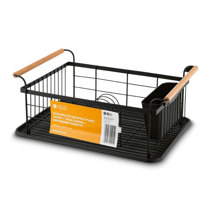 Czarna suszarka do naczyń TADAR o wymiarach 44 x 32 x 18,5 cm to praktyczne i stylowe rozwiązanie do każdej kuchni. Dzięki jednopoziomowej, kompaktowej konstrukcji, z łatwością zaoszczędzisz miejsce, jednocześnie mając pewność, że wszystkie umyte naczynia, takie jak talerze, szklanki czy kubki, wyschną w sposób bezpieczny i efektywny. Przemyślany projekt suszarki, wyposażonej w tackę na wodę, skutecznie chroni blat kuchenny przed ociekającą wilgocią.