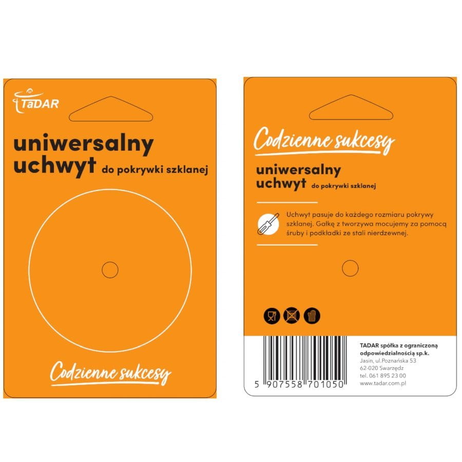 Uniwersalny uchwyt z tworzywa sztucznego do pokrywek szklanych, żaroodpornych z centralnie umieszczonym otworem. Pasuje do każdej średnicy pokrywki. Łatwy montaż, dzięki załączonej śrubie.