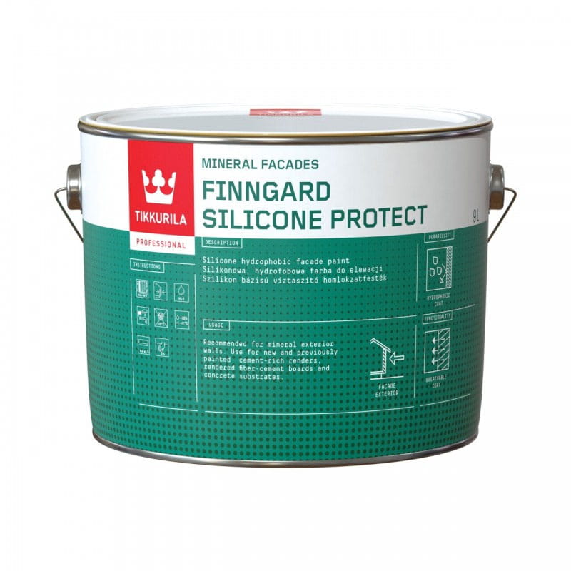 TIKKURILA Finngard Silicone Protect to wodorozcieńczalna, silikonowa farba elewacyjna. Do stosowania na tradycyjnych wyprawach wapienno-cementowych i cementowych, cienkowarstwowych tynkach mineralno-polimerowych i akrylowych oraz podłożach betonowych. Może być stosowany do renowacji powłok dyspersyjnych i mineralnych (silikatowych).