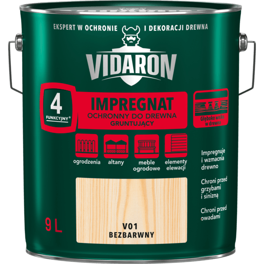 - 4 funkcyjny - gruntuje, impregnuje, wzmacnia i chroni drewno