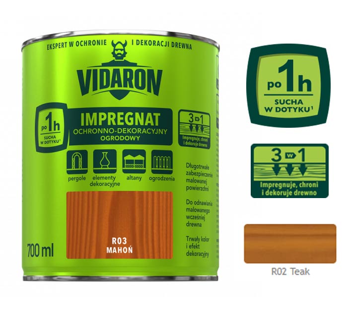 VIDARON IMPREGNAT OCHRONNO-DEKORACYJNY OGRODOWY R02 Teak 0,7L