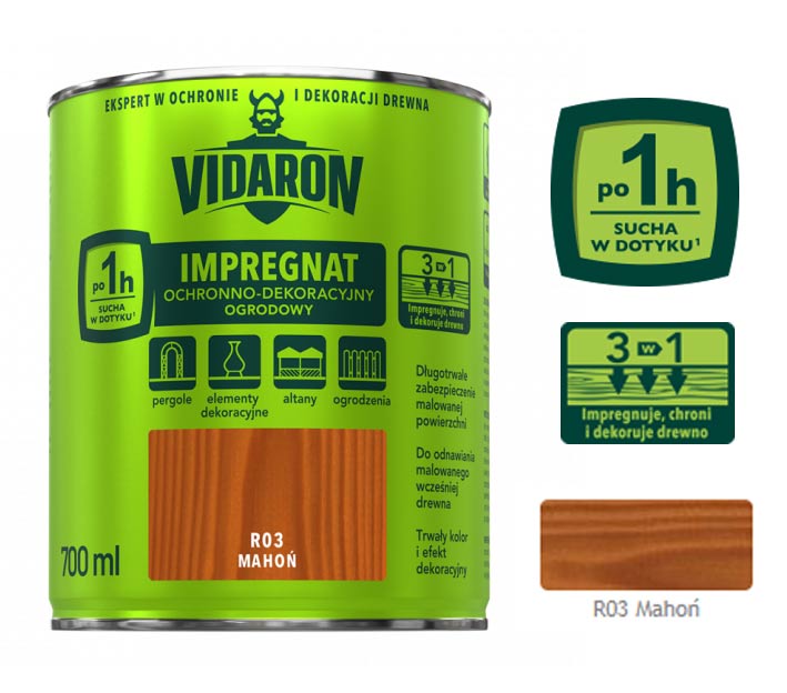 VIDARON IMPREGNAT OCHRONNO-DEKORACYJNY OGRODOWY R03 Mahoń 4,5L