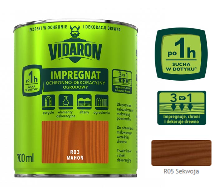 VIDARON IMPREGNAT OCHRONNO-DEKORACYJNY OGRODOWY R05 Sekwoja 0,7L
