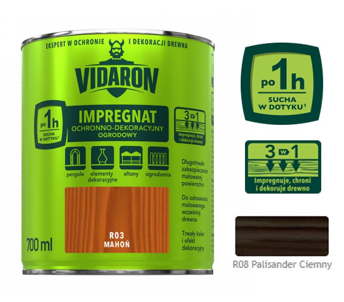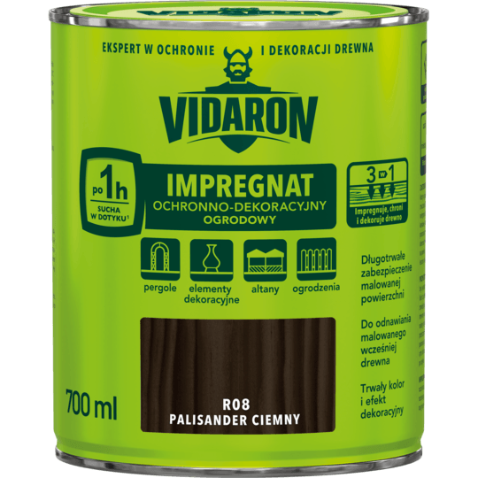 VIDARON IMPREGNAT OCHRONNO-DEKORACYJNY OGRODOWY R08 Palisander Ciemny 0,7L