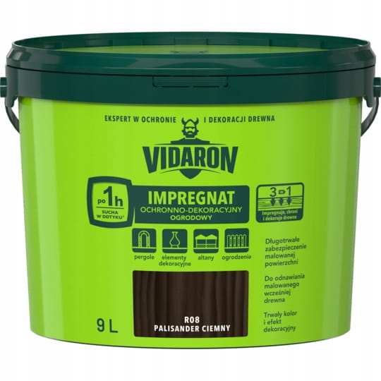 VIDARON IMPREGNAT OCHRONNO-DEKORACYJNY OGRODOWY R08 Palisander Ciemny 9L