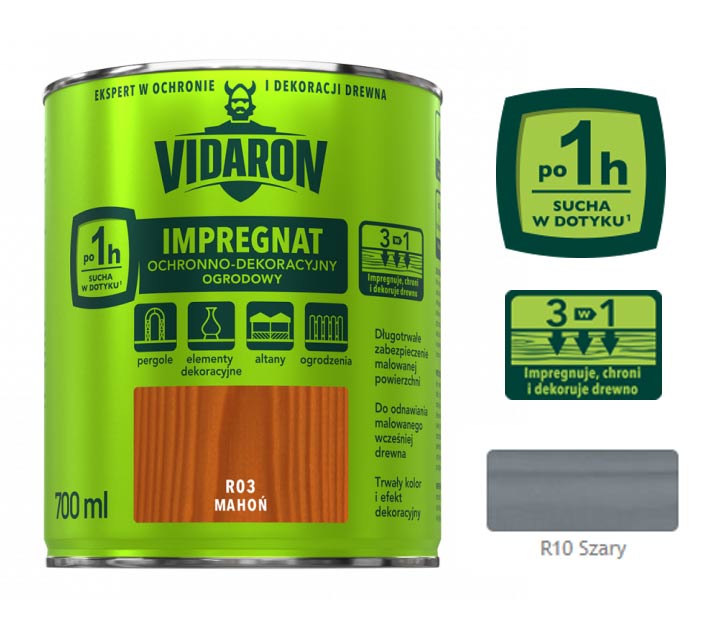 VIDARON IMPREGNAT OCHRONNO-DEKORACYJNY OGRODOWY R10 Szary 0,7L
