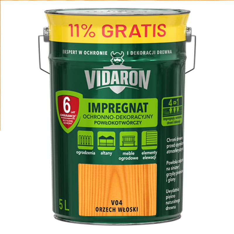 VIDARON Impregnat Ochronno-Dekoracyjny Powłokotwórczy Orzech Włoski V04 5L
